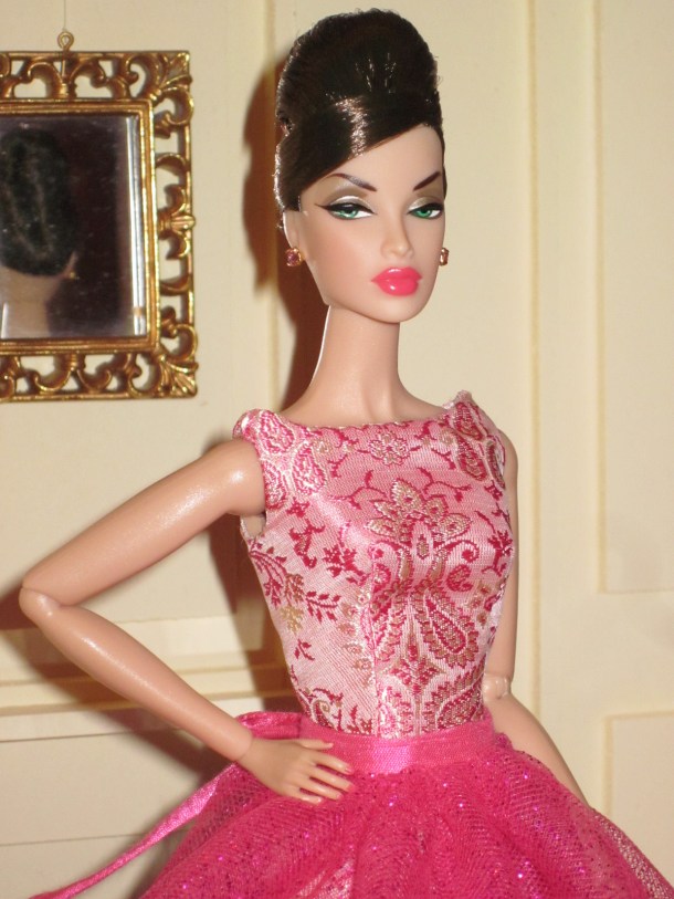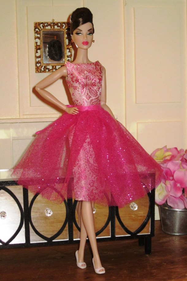 Cocktail dress in silk brocade in shades of pink with a raspberry sparkle tulle overskirt. Luscious! Edition of 4