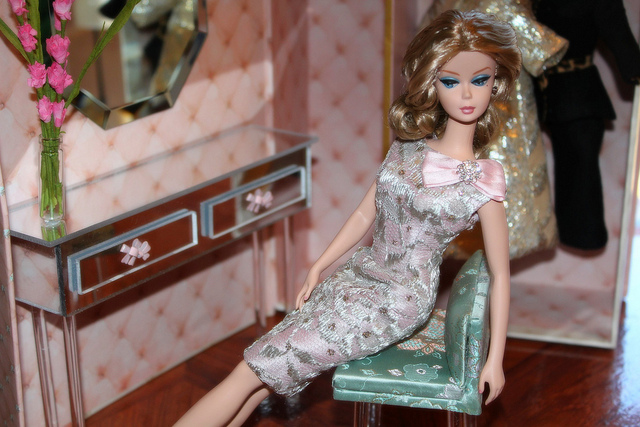 These fashions are fitted to the Silkstone Barbie body, but will also fit other dolls of similar size, as you can see.