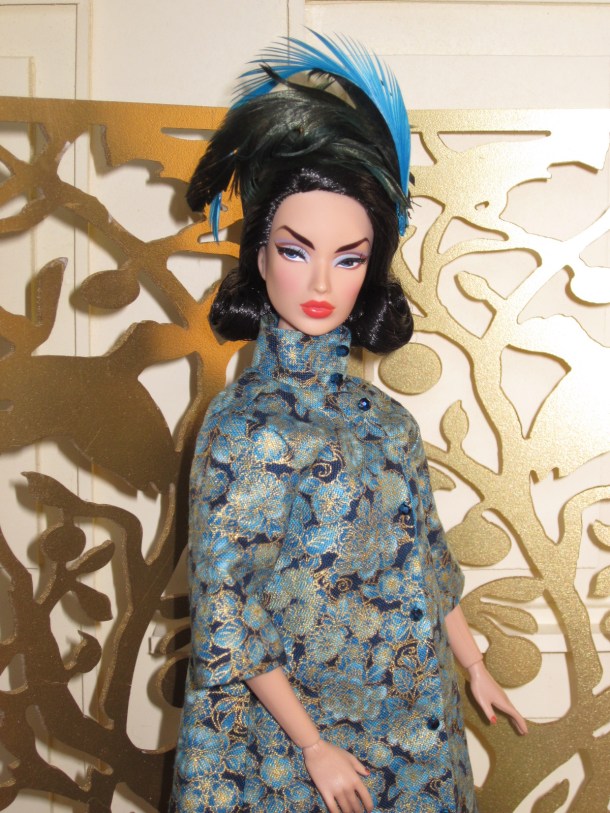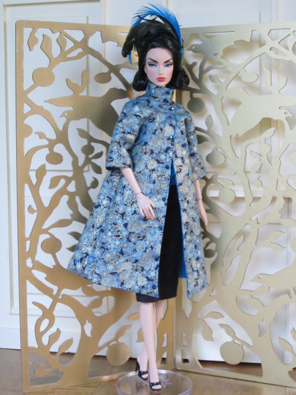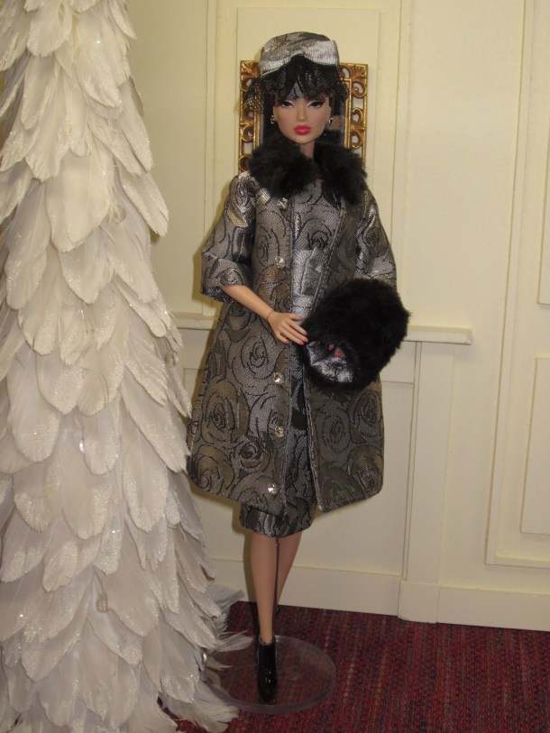 Victoire models a new holiday coat ensemble from Bellissima Couture Fashions.