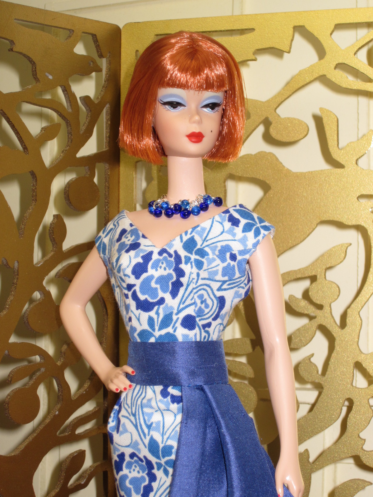 Delphinium is the third fashion in the series of Liberty of London fabrics that I have been debuting this week.  I love the clean combination of blues and white for summer.  A necklace of silver and cobalt and French blue glass Magatama beads completes the look.