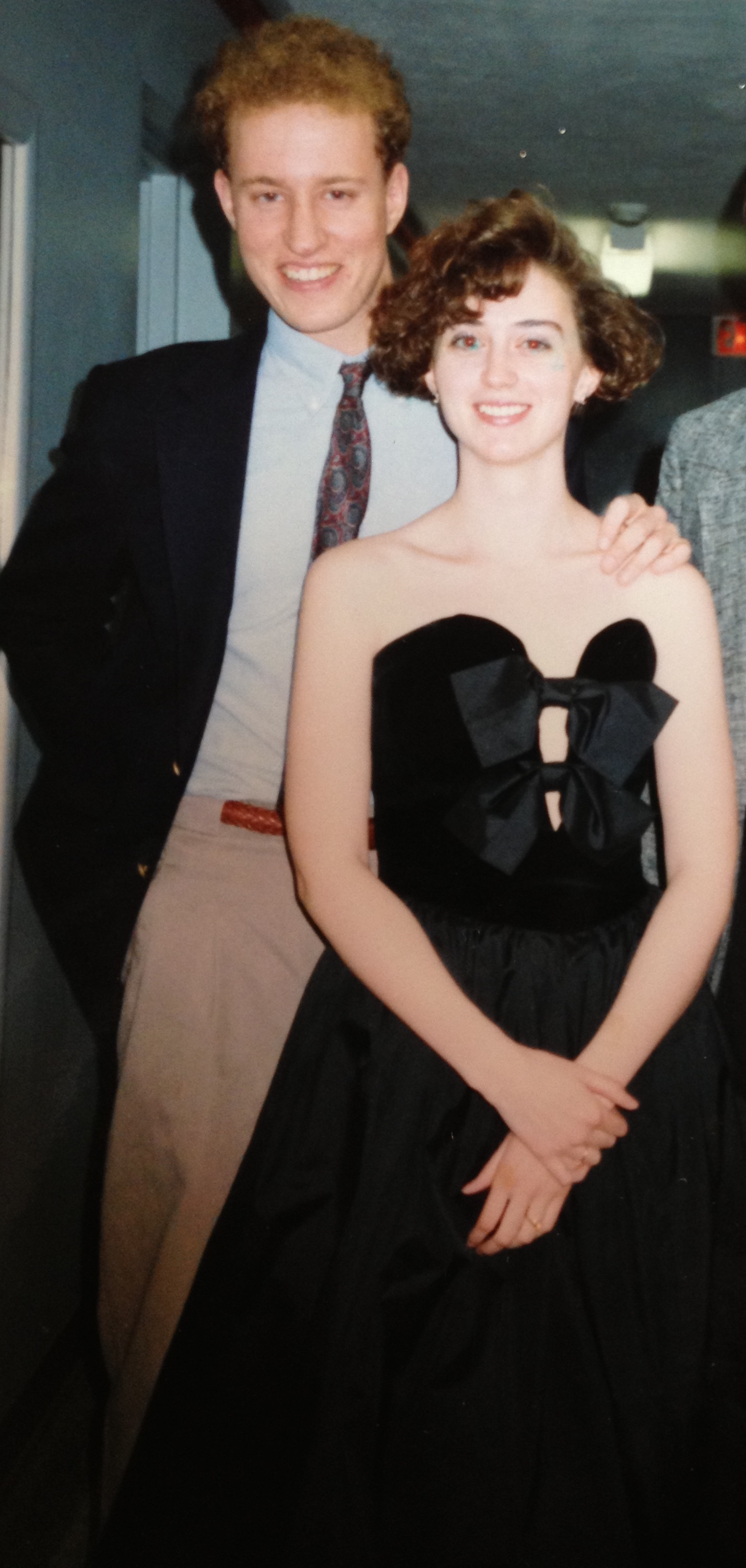 This pale yellow gown is a harbinger of gentle sunlight and buttercups. The dropped waist bodice is made of pale yellow silk taffeta. The halter neckline fastens with a large bow and Swarovski crystal brooch detail. The full skirt is richly embroidered white tulle with pale yellow flowers over multiple layers of soft yellow scalloped tulle.