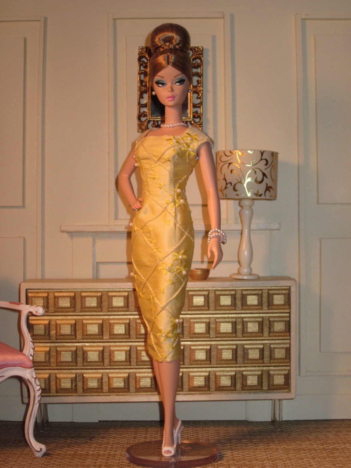 One of the things that I am enjoying most about making one of a kinds is that I can use favorite scraps of fabric that are too small for more than a sheath. This particular piece of beautiful lemon colored silk is very special. It has pin tucks in a diamond pattern overall, and then yellow embroidered flowers over the pin tucks. This gives the fabric a beautiful texture. To make it even more special, I embroidered pearls in the centers of the flowers. There is only one. Perfect for Easter!