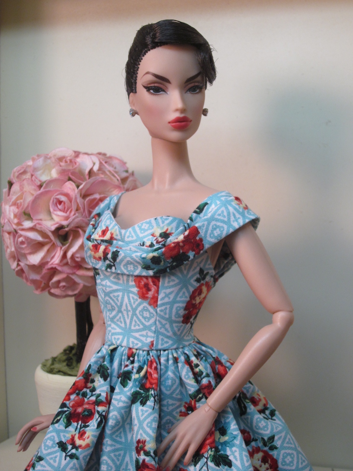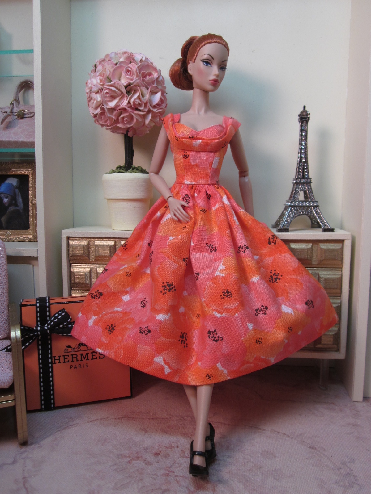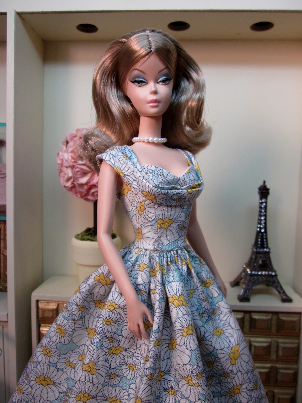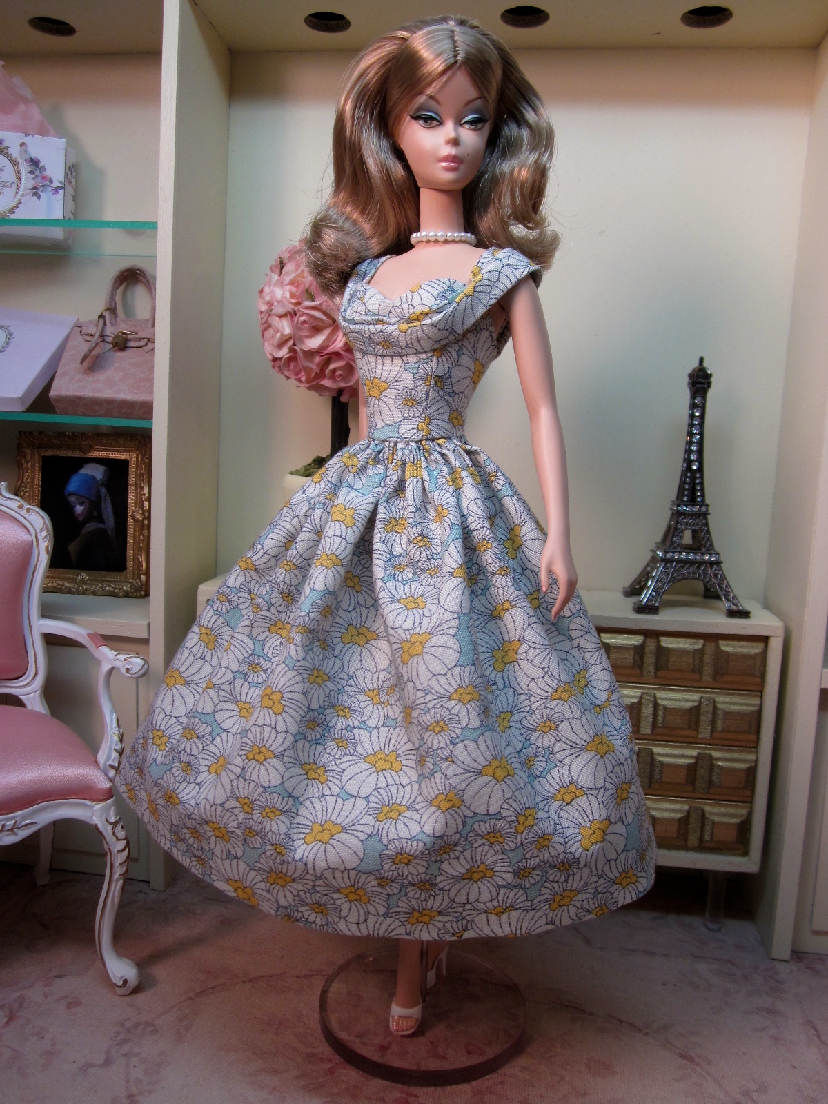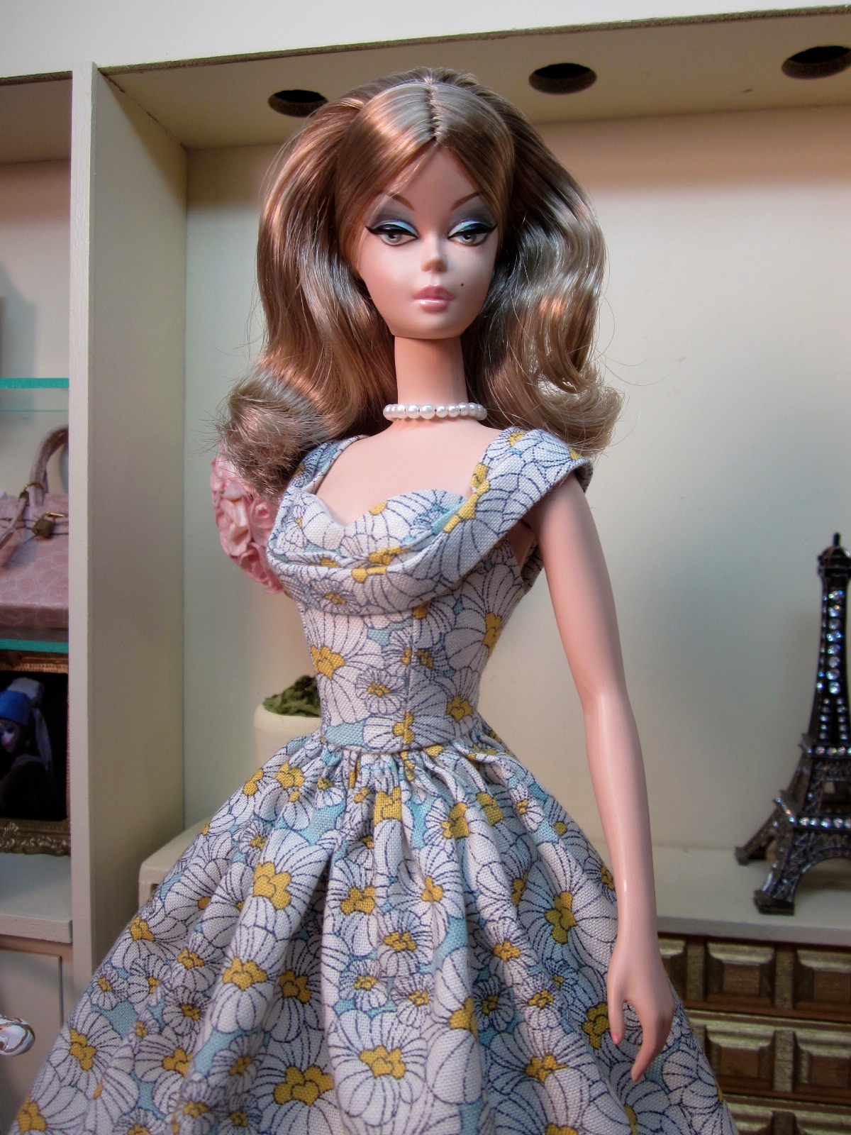 This darling set includes the Millinery Shop with light up capability and built-in vanity, as well as TEN custom-made hats ! Other accoutrements include 2 clear hat boxes (also custom-made), 5 hat mannequins , floral bouquet in gold filigree vase and ghost chair. Tending your needs for millinery is one of our “Mannequin Mavens” ! (Our own line of One Of A Kind Silkstone Beauties, dressed by Hilda and reimagined hair/paint by Maryann).