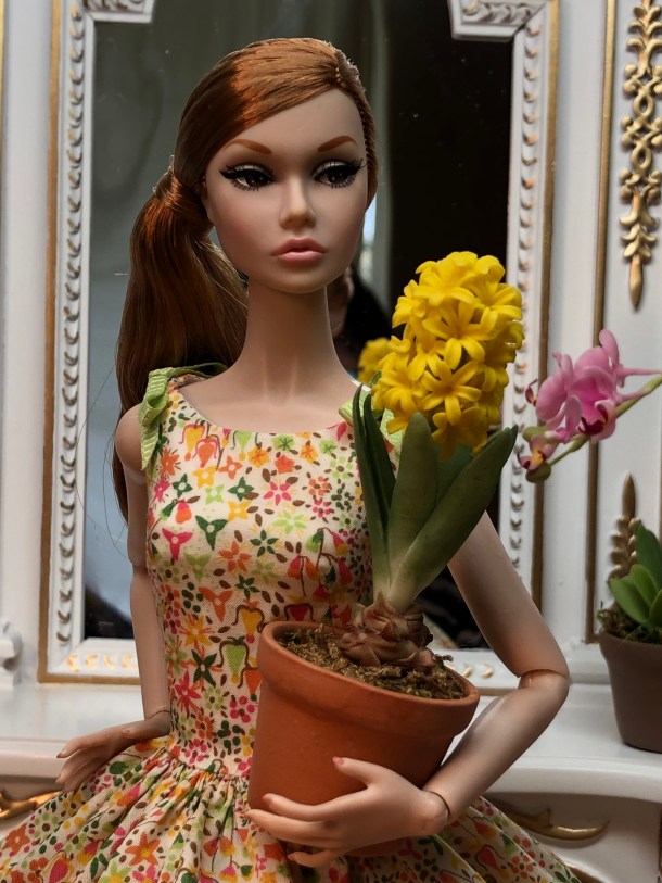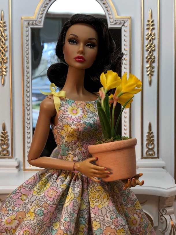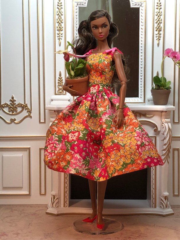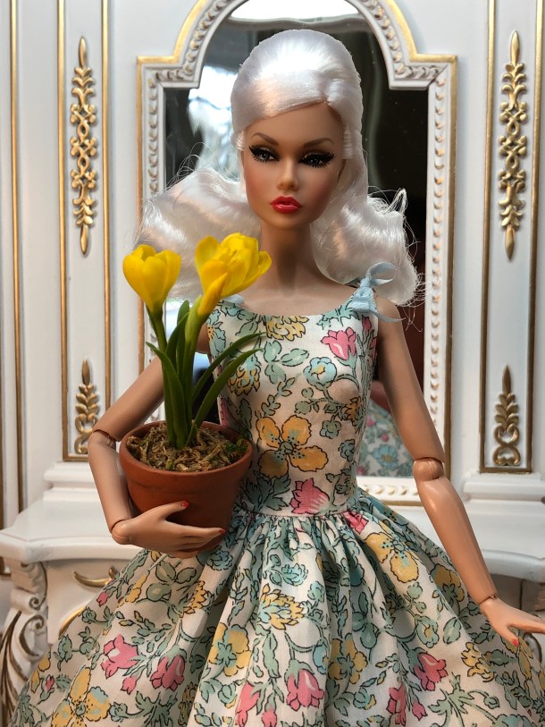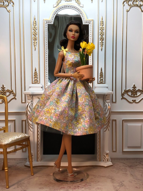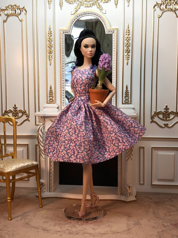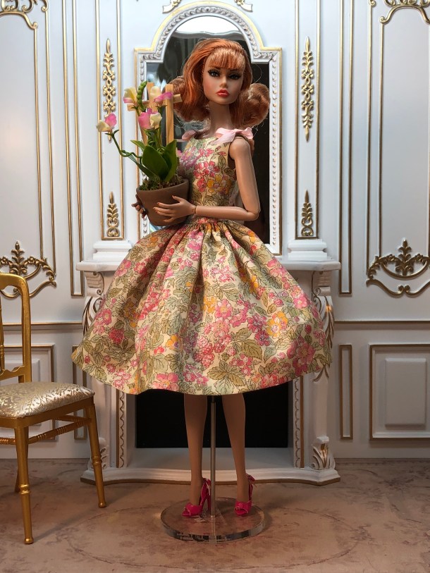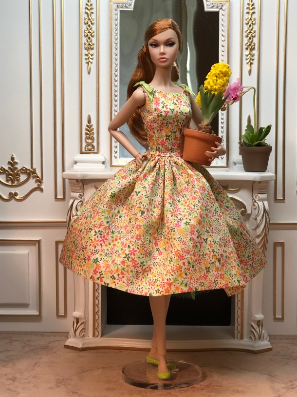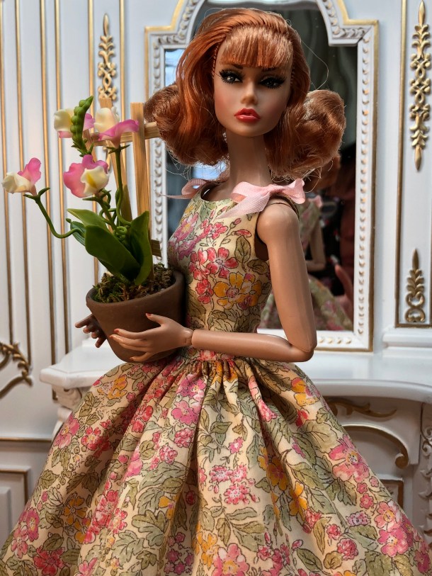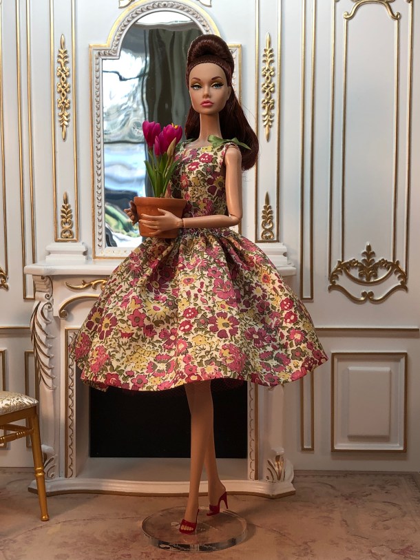 One of my favorite fabrics to work with for the dolls is Liberty of London Tana Lawn. It is crisp and smooth and has a gorgeous hand. And the prints! Most are the perfect scale for our girls. The coming of Spring here in the Pacific Northwest inspired me to pull a selection of florals and create some classic party dresses. In honor of Spring, each dress includes a beautiful coordinating potted flower.