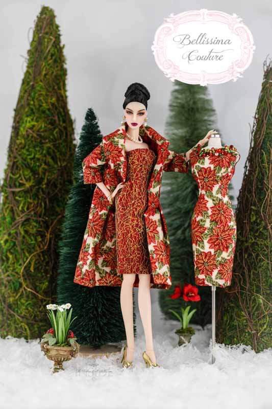 Welcome to the annual Holiday Event for Bellissima Couture and Inside the Fashion Doll Studio. You will find a variety of fashions; some are in a spicy dark red and green color palette, while others are in a sweet sugarplum color scheme. Every fashion has metallics, tying the whole collection together and making it extra festive! Holiday plants from Rebecca consist of amaryllis and paper whites with tiny red cyclamen plants. Plants are extremely limited and cost $35 each.