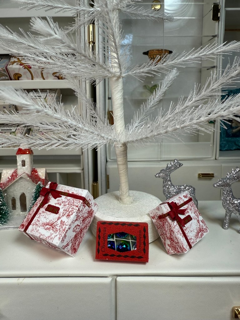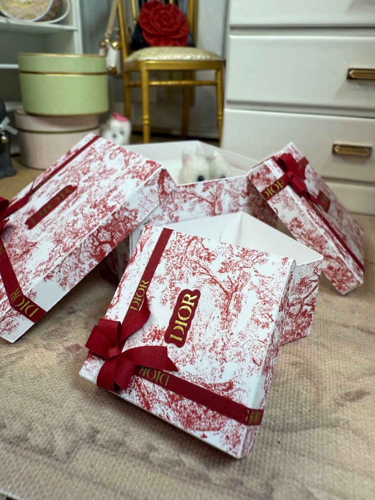 The divine red and white toile Dior boxes you see in my pictures are the work of the talented Rebecca Berry. If you are interested in learning more, please email her at raberry65@msn.com